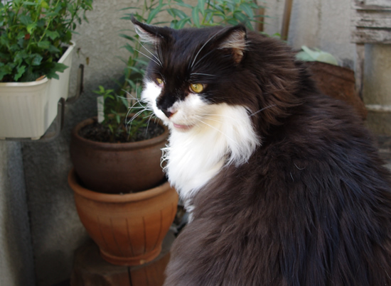 写真の猫は、実家にご飯を貰いに来てる野良ちゃん。