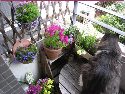 ベランダからの景色があまりに殺風景になったので、花の苗を買いましたがな。
