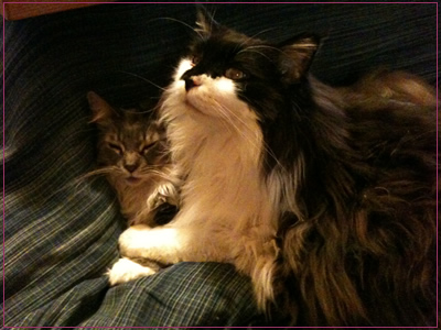 生きた猫と人形のネコと遊んで、気分転換の日々デス。