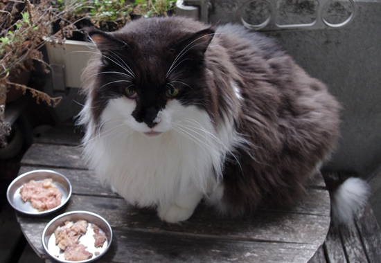 楽さま、涼しいベランダでのお食事を希望ノ図。