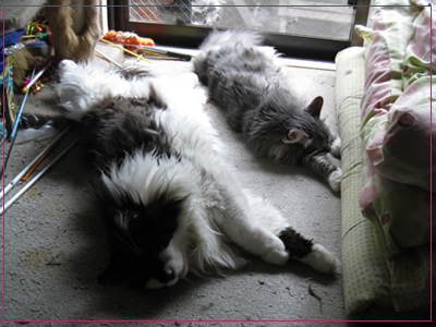 再度ネコ捜索をすると、楽はあたしのゲーム用テレビの裏で、芳奈はオサーンの部屋のクローゼットの奥で地蔵のように固まってましたヨ!